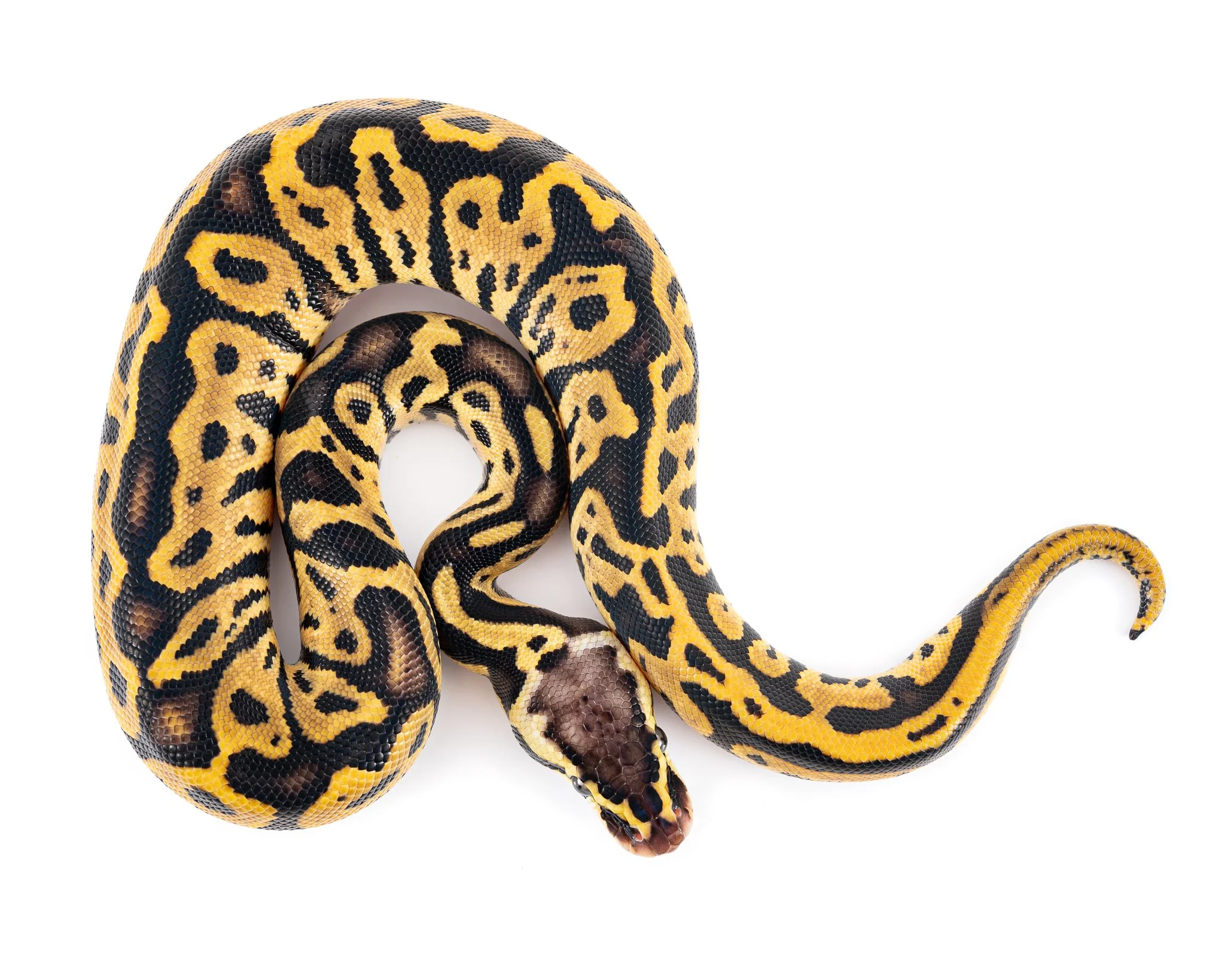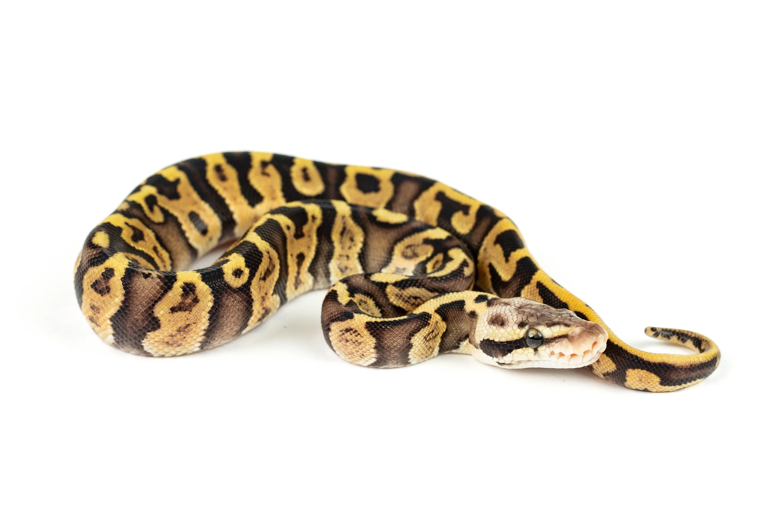 Vi har en rekke ulike gener i vår samling av arten kongepyton, hvor personlige favoritter er mojave, leopard og clown. De siste tre årene har vi heller valgt å fôre opp unger til fremtidige avlsprosjekter, og har gitt våre allerede voksne avlsdyr en liten pause. Fremover fra oss fra og med 2027 og utover kan man nok forvente å se litt clown-kull igjen, men vi holder nok oppdrett på kongepyton til maks 1-2 kull i året. (slik vi egentlig har gjort hele veien siden 2017).